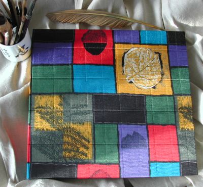 Großes Bandoneonbuch im Stoffeinband. Der Stoff hat einen zarten Golddruck. Die im Zickzack gefalteten Innenseiten sind aus festem, weißen Karton gefertigt. Es stehen 20 Seiten zur freien Gestaltung zur Verfügung, im vorderen Deckel befindet sich eine Einstecktasche. Das Satin-Schleifenband in Goldfarben ist fest integriert. Format ca. 21x21cm. Euro 25,-