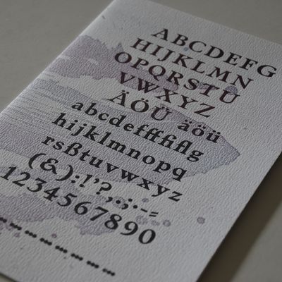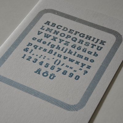 Klappkarte im Format A5 auf strukturiertem Designpapier (250 g) mit passendem Umschlag. Handsatz aus Bleilettern. Limitierte Auflage
