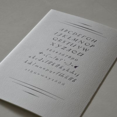 Klappkarte im Format A5 aus strukturiertem, weißen Designpapier (250g) mit passendem Umschlag. Handsatz aus Bleilettern. Limitierte Auflage.