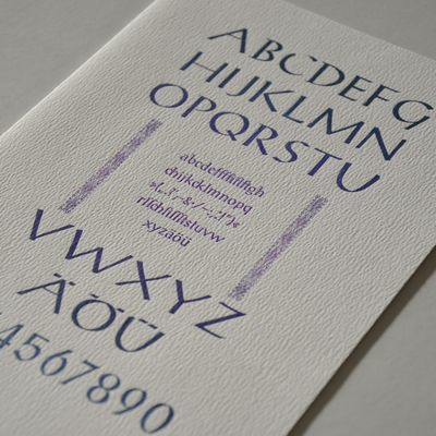 Klappkarte im Format A5 aus strukturiertem, lichtgrauen Designpapier (250g) mit passendem Umschlag. Handsatz aus Bleilettern. Limitierte Auflage.