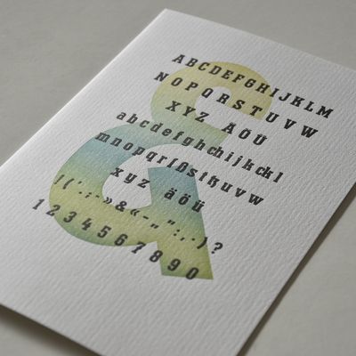 Klappkarte im Format A5 aus strukturiertem, weißen Designpapier (250g) mit passendem Umschlag. Handsatz von Bleilettern. Limitierte Auflage.