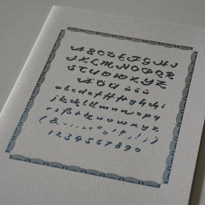 Klappkarte im Format A5 aus strukturiertem, weißen Designpapier 8250 g) mit passendem Umschlag. Handsatz aus Bleilettern. Limitierte Auflage.