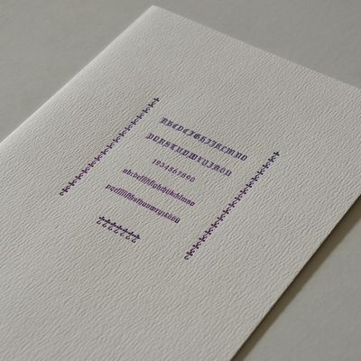 Klappkarte im Format A5 aus strukturiertem, weißen Designpapier (250 g) mit passendem Umschlag. Handsatz aus Bleilettern. Limitierte Auflage.