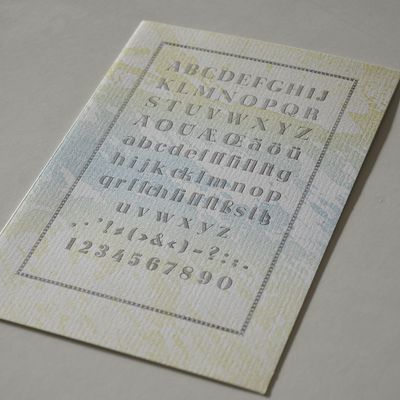 Klappkarte im Format A5 aus strukturiertem, weißen Designpapier (250 g) mit passendem Umschlag. Handsatz aus Bleilettern. Limitierte Auflage.