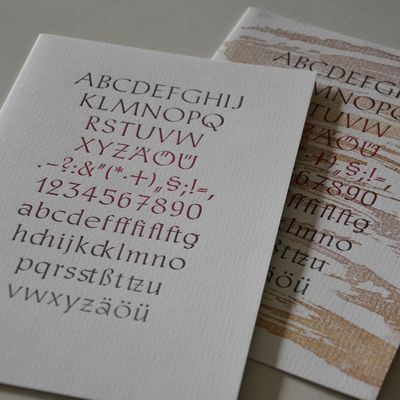 Klappkarte im Format A5 aus strukturiertem, weißen Designpapier (250 g) mit passendem Umschlag. Handsatz aus Bleilettern. Limitierte Auflage.