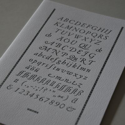 Klappkarte im Format A5 aus strukturiertem, weißen Designpapier (250 g) mit passendem Umschlag. Handsatz aus Bleilettern. Limitierte Auflage