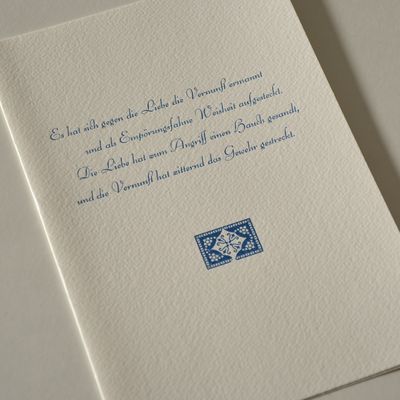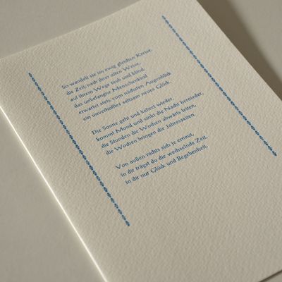 Klappkarte im Format A5 aus strukturiertem Designpapier (250 g) mit passendem Umschlag. Limitierte Auflage.