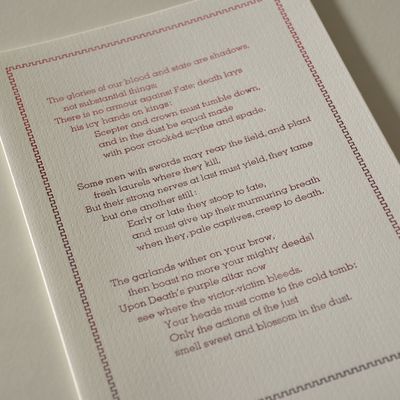 Johann Gottfried von Herder ist 1744 zu Morungen geboren, wurde 1802 geadelt und ist 1803 in Weimar gestorben. Sein Gedicht “Das Lied des Lebens ist hier von Hand gesetzt aus der Vendôme und in zwei Varianten gedruckt.