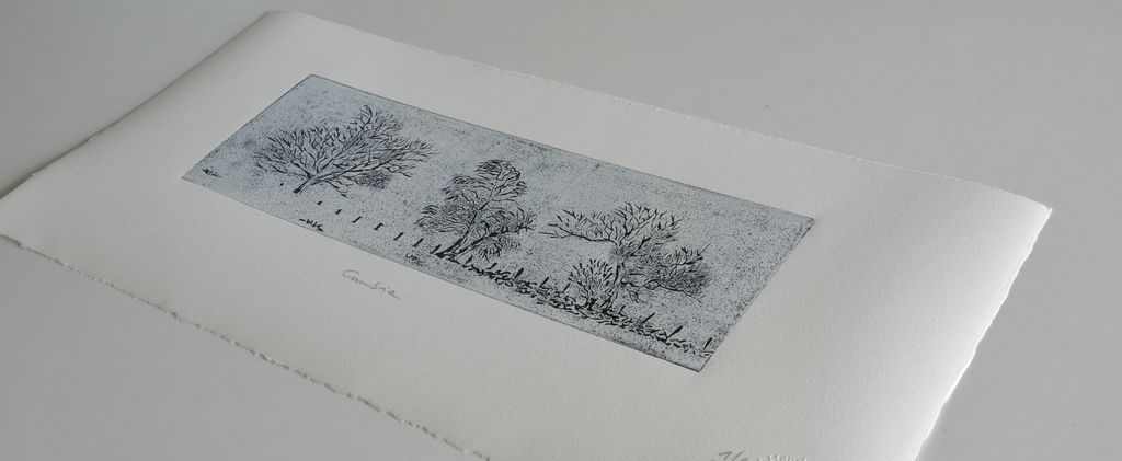 Holzschnitt “Cumbria” auf Bütten, Format 48 x 21 cm