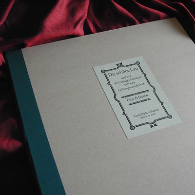 Das Künstlerbuch “Die schöne Lau” entstand zum 10-jährigen Bestehen des Ateliers. Der ursprüngliche Name des Ateliers, als es noch an seinem schwäbischen Standort war, war „bleiklötzle“. Das ist eine Anspielung auf einen beliebten schwäbischen Zungenbrecher, der in einer Geschichte von Eduard Mörike auftaucht, die in Blaubeuren spielt. Es ist dies die „Historie der Schönen Lau“, eine der Mythen und Sagen, die im „Stuttgarter Hutzelmännlein“ miteinander verwoben sind. Das Klötzle Blei ist in der Geschichte von Mörike ein zauberkräftiges Lot. In gewisser Weise sind die Bleilettern durchaus auch zauberkräftig, denn sie haben über die Jahrhunderte den Menschen zu Bildung verholfen und ihnen Information ebenso wie Literatur und Unterhaltung gebracht. Das Blei aus den Schriftkästen hat die Welt in wundersamem Maße verändert – der Name „bleiklötzle“ für ein Atelier, in dem mit Bleilettern gedruckt wird, kam also nicht ganz von ungefähr.