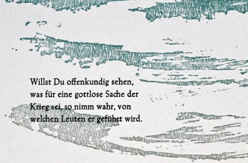 Sein Gedicht „Alles habend alles wissend“ liegt hier als Einblattdruck vor. Das großformatige Bütten wurde zunächst Bogen für Bogen von Hand eingefärbt, in einem Prozess, der der Batik auf Stoff vergleichbar ist. Durch dieses Verfahren wird jeder Bogen zu einem Unikat. Im nächsten Schritt ist der Text aufgedruckt. Gesetzt ist von Hand aus der Akzidenz-Grotesk. Das Blatt hat ein Format von ca. 35 x 78 cm und liegt in einer Auflage von 8 signierten Unikaten vor. Der Einblattdruck ist erschienen im Jahr 2008.