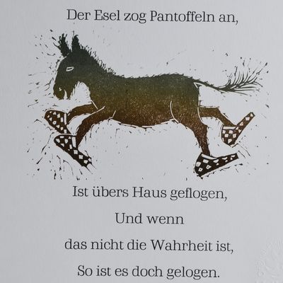 Eine Kuh die saß im Schwalbennest … (Pantoffelesel)