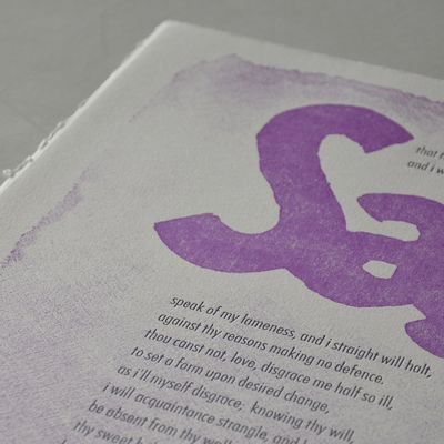 Bei seinemTod im Jahr 1616 hatten sich die Sonette, die William Shakespeare geschrieben hatte, auf 154 summiert. 400 Jahre nach seinem Tod hat die Bodleian Library in Oxford Druckkünstler in aller Welt dazu aufgerufen, zeitgenössische Versionen dieser Texte zu drucken. Die 154 Sonette waren rasch vergeben, und ich gehörte zu den Glücklichen, denen eines davon zugesprochen wurde: Nummer 89.