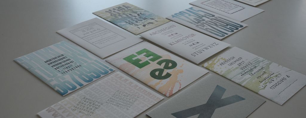 Im Jahr 2012 entschloss ich mich, so viele meiner Schriften wie möglich als Alphabete zu drucken. Ich wollte kein Buch daraus machen, es sollten einzelne Karten werden. Am Ende sind es 100 Kartenmotive geworden im Format A5 – die Reihe heißt: Meine Typen. Gedruckt sind sie auf verschiedene Qualitäten der Rives-Papierreihe im Flächengewicht von 250 Gramm.