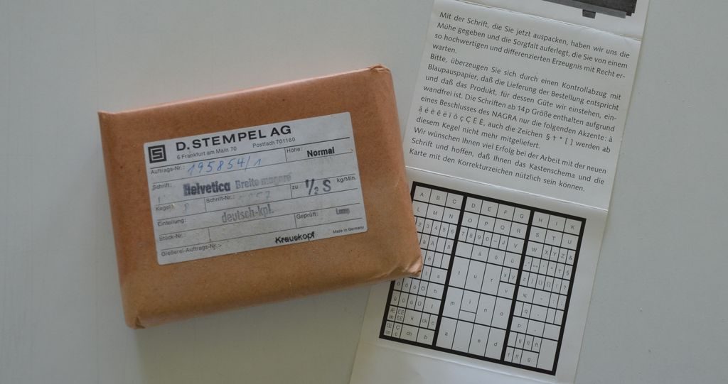 Zu Buchdruckzeiten wurden Schriften in der Schriftgießerei bestellt und geliefert – gänzlich unbenutzt und blitzeblank. Die noch makellosen Lettern wurden als Block ordentlich mit Kolumnenschnur ausgebunden und sorgsam in dicken Tauen eingepackt geliefert. Sie mussten dann streng gemäß Norm in Schriftkästen eingelegt werden. Bei Schriftgraden größer 16 Punkt wurden die Lettern in der Regel in Steckschriftkästen alphabetisch gesteckt.