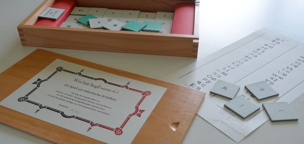 Ein weiteres Projekt, das sich mit den unterschiedlichen Schriften befasst, entstand im Jahr 2003. Es ist das typographische Spiel „Wer hat Angst vorm langen s?“ Das Spielprinzip ist das eines Erinnerungsspieles: alle Karten liegen verdeckt auf dem Tisch und nun müssen passende Paare gefunden werden. Hier ist die Aufgabe so gestellt, dass immer Karten mit den gleichen Buchstaben ein Paar bilden, allerdings ist der Buchstabe einmal aus einer gebrochenen Schrift und einmal aus einer Antiquaschrift gesetzt. Das Spiel enthält 80 Kärtchen, die alle von Hand gefertigt sind: zugeschnitten auf einer Krause-Pappschere aus dem Jahr 1912.