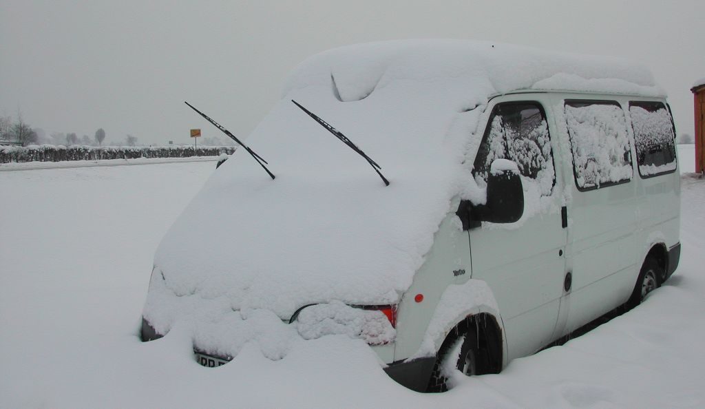 Dort wurden dann die übers Jahr von uns angekauften und sorgsam gestapelten Schriftkästen eingeladen. Mitunter fand sich noch anderes, das mitgenommen werden wollte: ein Stapelschneider Marke Krause zum Beispiel, Baujahr um 1912. Im Jahr 2002 waren wir Ende Oktober unterwegs, um unsere Schriften abzuholen. Auf der Rückfahrt hatten wir ungefähr eine halbe Stunde Vorsprung vor dem Orkan Jeanett. Im letzten Moment hatten wir uns entschlossen, nicht über die Hansaroute im Westen zurückzufahren, sondern unsere vertraute Strecke über die A7 zu nehmen, die weiter östlich lag. Der Sturm kam vom Nordatlantik und traf am Nachmittag den Westen Deutschlands zuerst. Die über 30 Schriftkästen gaben dem Transit zwar ordentlich Gewicht, die Böen, die dem Orkan vorauseilten, rüttelten den fahrbaren Kleiderschrank aber schon ordentlich durch, vor allem auf den vielen hohen Talbrücken in Hessen. Wir kamen wohlbehalten und noch so rechtzeitig in Süddeutschland an, dass es reichte, eine letzte, schnelle Runde mit dem Hund zu gehen. Danach igelten wir uns ein und über Nacht zog der Orkan nach Osteuropa weiter. Die angerichteten Schäden waren erheblich, europaweit waren 47 Todesopfer zu beklagen.