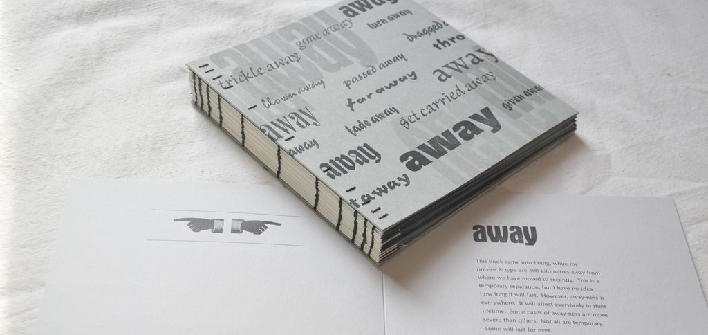 Die koptische Heftung gehört auch in diesen Bereich. Sie ist eine sehr alte Hefttechnik und stammt aus dem Orient. In alten Zeiten standen die verschiedenen Farben der Heftgarne für unterschiedliche Buchinhalte: rot wurden die Gesetzestexte geheftet, blau die Trauerangelegenheiten und grün die Texte der Propheten. Diese Heftweise gibt eine Art Kettenstichmuster quer über dem Buchrücken. Sie hat eine Reihe von Vorteilen, unter anderem lässt sie sich sehr flach aufschlagen. Außerdem ist das Buch in seiner Dicke nicht so festgelegt, das heißt, es können auch nachträglich noch Notizen oder auch Fotos eingefügt werden. Damit war diese Heftweise ideal für mein Werk „away“. Jedes der 12 Unikate enthält 12 Fotos, die nachträglich in das Buch eingeklebt wurden.