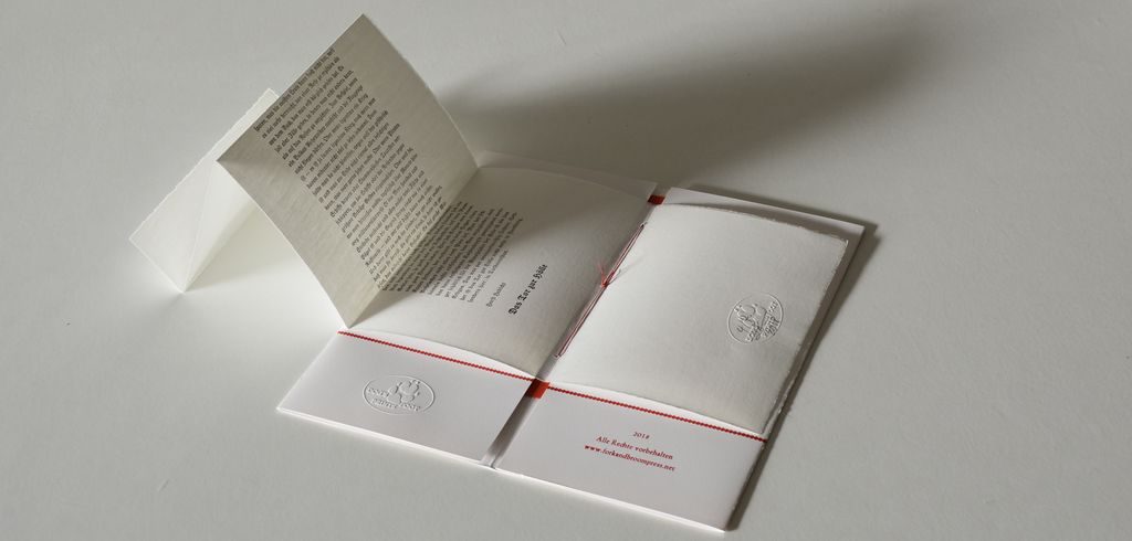 Die Bücher, die ich meine, erscheinen in limitierter Auflage. Vielleicht 10, vielleicht 50 nummerierte und signierte Exemplare. 100 sind schon viel. Die Menschen, die diese ganz anderen Bücher machen, sind Künstler. Es sind Pressendrucker, Typographen, Druckkünstler, manche oder mancher war einst Buchbinder, Buchhändler, Buchdrucker oder Schriftsetzer – oder ganz was anderes. Wenn sie sich für einen Text, einen Autor, ein Thema entscheiden, dann weil sie diesen Text, diesen Autor, dieses Thema wichtig finden. Ihr Buch, sein Inhalt und die Ausgestaltung sind ihnen ein Anliegen. Sie wählen keinen Bedruckstoff, sie suchen mit Bedacht das richtige Papier aus oder lassen es eigens für ihr Projekt schöpfen. Sie suchen kein Einbandmaterial, sie ziehen ihrem Buch die passenden Kleider an. Sie sind offen für Neues, vorausgesetzt es fügt sich in die Idee ihres Werkes.