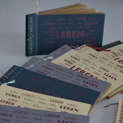 Die koptische Heftung gehört auch in diesen Bereich. Sie ist eine sehr alte Hefttechnik und stammt aus dem Orient. In alten Zeiten standen die verschiedenen Farben der Heftgarne für unterschiedliche Buchinhalte: rot wurden die Gesetzestexte geheftet, blau die Trauerangelegenheiten und grün die Texte der Propheten. Diese Heftweise gibt eine Art Kettenstichmuster quer über dem Buchrücken. Sie hat eine Reihe von Vorteilen, unter anderem lässt sie sich sehr flach aufschlagen. Außerdem ist das Buch in seiner Dicke nicht so festgelegt, das heißt, es können auch nachträglich noch Notizen oder auch Fotos eingefügt werden. Damit war diese Heftweise ideal für mein Werk „away“. Jedes der 12 Unikate enthält 12 Fotos, die nachträglich in das Buch eingeklebt wurden.