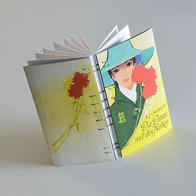 Ein Buch aus der Reihe “Kleine Freunde” im Hochformat ca. 13x16cm mit 72 Seiten griffigem Papier in leichtem Chamoiston. Fadenheftung mit Leinenzwirn. Flexibler Stoffeinband, der Stoff hat einen feinen Golddruck. Vorsatz fliederlila. Unikat.