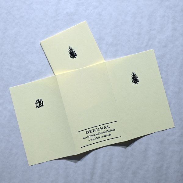 Gedruckt auf feinem, chamoisfarbenen Karton mit zarter Struktur. Die Klappkarte hat 6 Seiten und bietet Platz für vieles, was man zum neuen Jahr übermitteln möchte. Die Karte kann individuell gestaltet werden, das Material lässt sich beschreiben, bemalen, es eignet sich zum Zeichnen, für Collagen und es kann auch ein Pop-Up-Motiv innen eingebaut werden.
