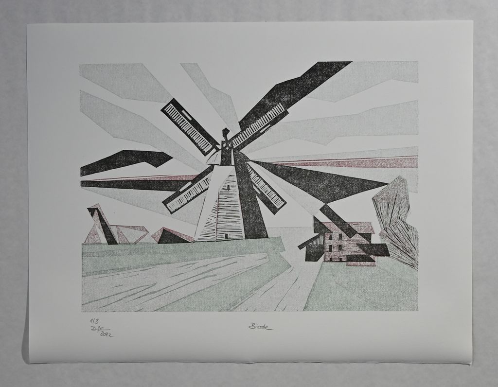 Die Mühlengraphiken sind entstanden im Zusammenhang mit dem Künstlerbuch „Nichts bleibt wie es war“. Es sind Farblinolschnitte, gedruckt von 2 bis 6 Druckplatten je Motiv, die eine Auswahl von Mühlen auf der Westfälischen Mühlenstraße zeigen. Zehn von ihnen sind als Illustrationen im Künstlerbuch verwendet. Das Buch thematisiert den Wandel an sich. Es greift auf Mythen zurück und zitiert Denker von Heraklit bis zum Wissenschaftstheoretiker Thomas Kuhn. Vor allem aber ist es eine Hommage an den Philosophen Henri Bergson und seine Auffassung von Zeit & Dauer, sowie an den Kubismus wie ihn Lyonel Feininger aufgefasst hat.