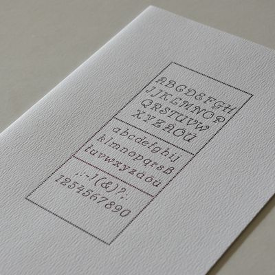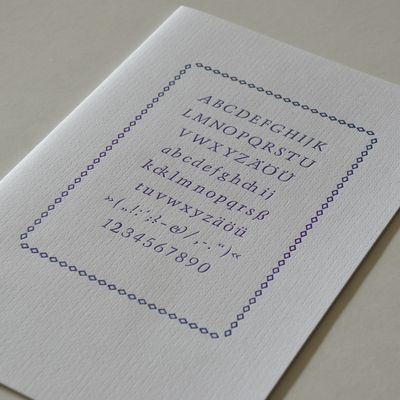 Klappkarte im Format A5 aus strukturiertem, weißen Designpapier 8250 g) mit passendem Umschlag. Handsatz aus Bleilettern. Limitierte Auflage. Schrift: AmatiJahrgang: 1951Schriftgestaltung: Georg Trump 1896-1985Druck der Schrift: Farbverlauf blau-violett Für: Geburtstag, Jubiläum, Graphikdesign, Kalligraphie,…