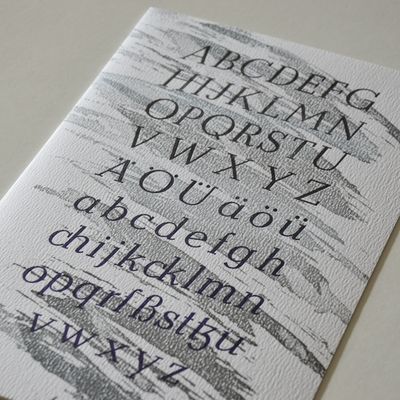 Klappkarte im Format A5 aus strukturiertem, weißen Designpapier (250 g) mit passendem Umschlag. Handsatz aus Bleilettern. Limitierte Auflage. Schrift: Akzidenz-GroteskJahrgang: seit 1896Schriftdesign: Ferdinand Theinhardt, Günter G. Lange u. a.Druck der Schrift: schwarzHintergrund: Farbverlauf…