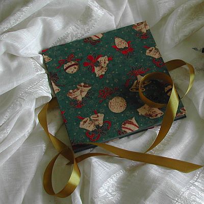 Großes Bandoneonbuch im Stoffeinband. Der Stoff hat einen zarten Golddruck. Die im Zickzack gefalteten Innenseiten sind aus festem, weißen Karton gefertigt. Es stehen 20 Seiten zur freien Gestaltung zur Verfügung, im vorderen Deckel…
