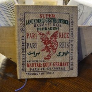 Ein Buch aus der Reihe Gourmet-Bücher. Der Einband dieses Buches ist aus einer Rupfentasche gefertigt, die ursprünglich Basmatireis enthielt. Für die Seite ist ein gutes Schreibpapier verwendet, das einen angenehmen Chamoiston und leichte…