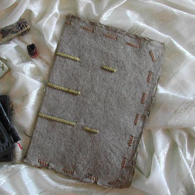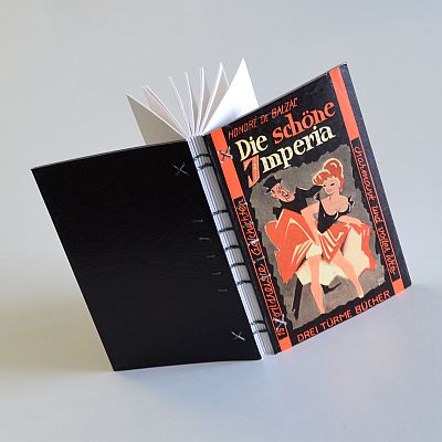 Der Umschlag für dieses Unikatbuch ist aus einem ganzen Bogen afrikanischen Faserpapieres gefertigt. Seiten und Umschlag sind auf Brokatborten geheftet. Format des Buches ca. 24x32cm. Das Buch hat 80 Seiten aus scharlachrotem Ingres-Büttenpapier…